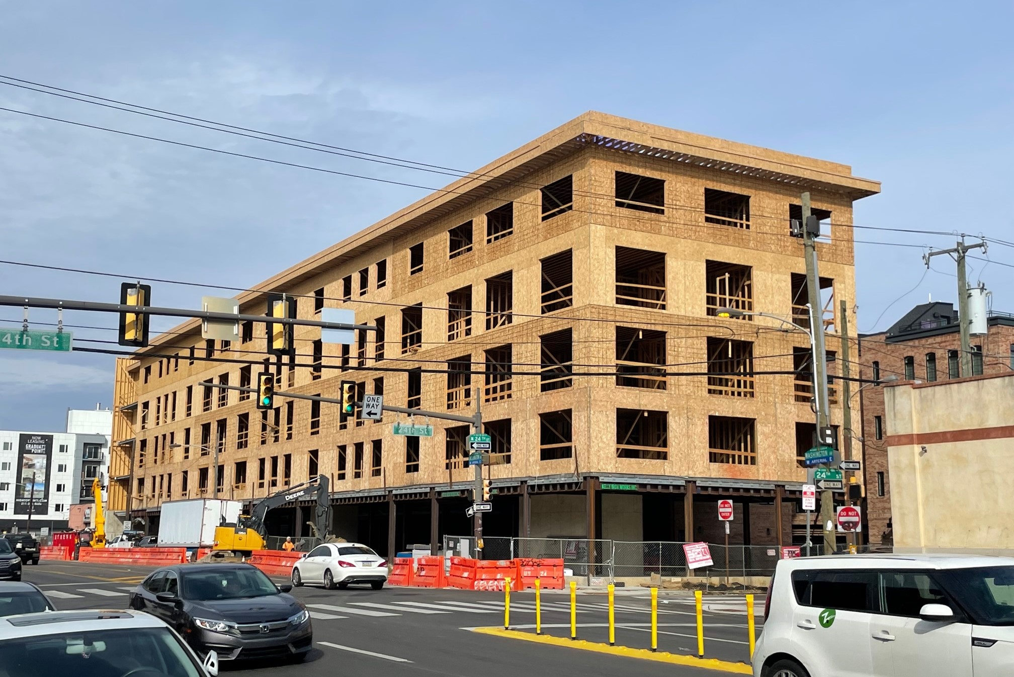 At 2401 Washington Ave., beauty isn’t exactly something that pops to mind at first blush. For over a century, the corner has looked a bit rough, with a dilapidated wood structure from the early 1900’s giving way to a surface lot that saw little but piles of trash. There are still buildings standing across the street from this site that point to the industrial past, thanks to the former Washington Avenue Substation. But for this once rubbish-strewn lot, construction is at full charge for a major mixed-use upgrade.