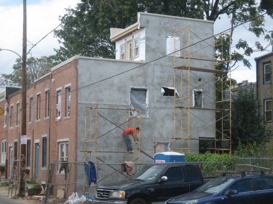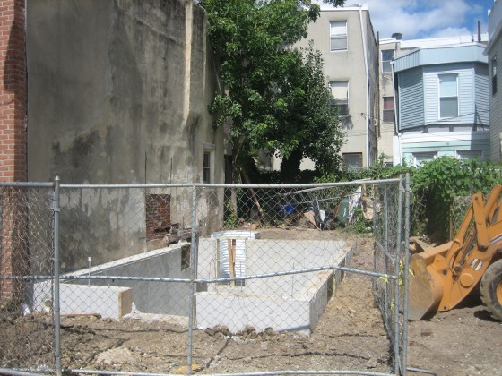 Based on some reader comments, we now understand that the new construction is an extension of the building next door, creating a veritable palace on Clymer St.! And in case you’re wondering, the homeowner is wasting little time building his Clymer Street Dream Home.
