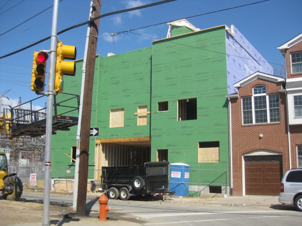 Last month, we told you about a collection of projects on or around Grays Ferry Avenue. Included in that group was a five-unit development on the 2500 block of Carpenter Street that was, at that time, a new foundation. Passing by today, we saw it's been framed out.