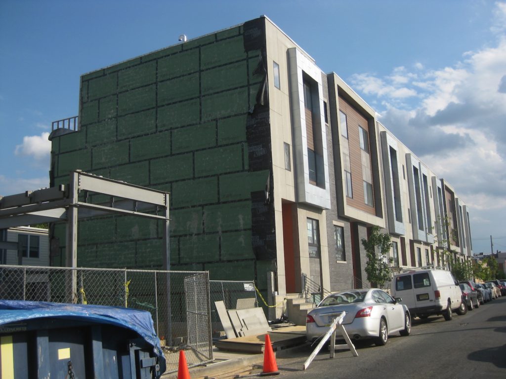 The construction that caught our eye a few weeks back was not work on the corner, but on the homes that were finished earlier this year. It looked like the facades were being replaced. So we reached out to the developers to get the scoop.
