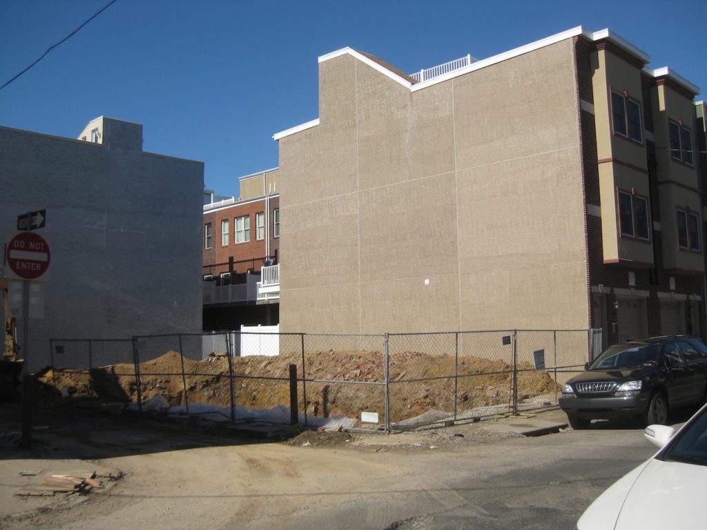 The property was acquired by Mams Development LLC out of Richboro in late 2012 for $124K. According to permits, they're building a duplex on the site, which we would imagine will be sold as condos. It's nice to see that this property will break the recent trend in the immediate area and forego a front-loading garage. While it's not entirely clear from the photo above, the lot immediately to the north is remaining vacant, as it has been for at least a decade. It's been owned by the same company since 2005, which has tried to sell it a couple of times over the years to no avail.