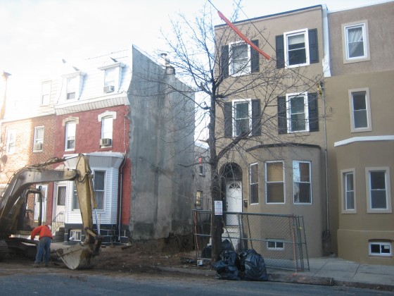 A reader emailed us last week about a new construction site at 2411 Christian St., across from the former W.S. Peirce School, vacant since 2007. While Christian St. in this neighborhood has numerous houses under construction at the moment, we haven’t seen nearly as much redevelopment or new construction on this particular block.