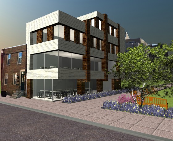 Sometime after purchasing the property, Ugur came up with a redevelopment plan. In the spring of 2012, he presented an idea to the SOSNA zoning committee to demolish the building and replace it with a four-story mixed-use project. The first floor or two called for a parkside cafe, with residential above. In general, the community looked favorably on the project, though several Montrose Street residents had concerns about noise, trash, etc. Considering that the property is zoned for residential and not commercial use, we're not sure what would have happened at the ZBA.