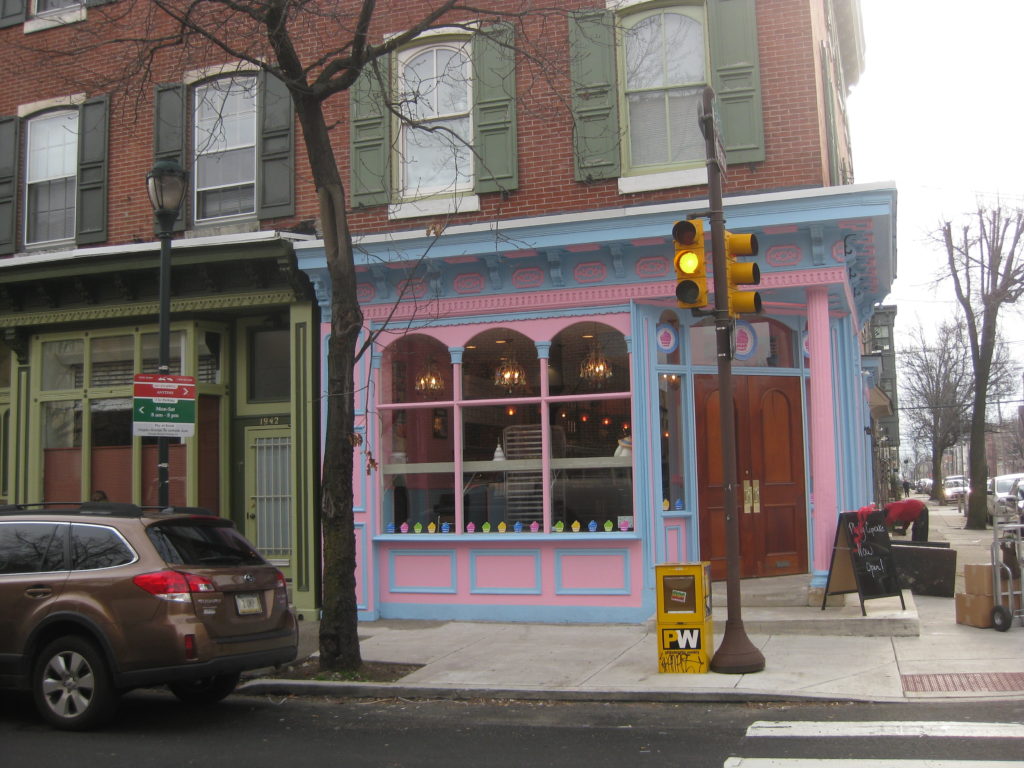 No doubt, the appearance of this new business is yet another win for South Street West, which seems to be getting a new addition every week these days. Especially on a stretch that’s got more residential than commercial traffic, it’s nice to see this corner come to life. Our only complaint: couldn’t they have stuck with the tasteful green color scheme on the outside? The pastel look works on Victorian homes in West Philly. On South Street West? Eh, not so much.