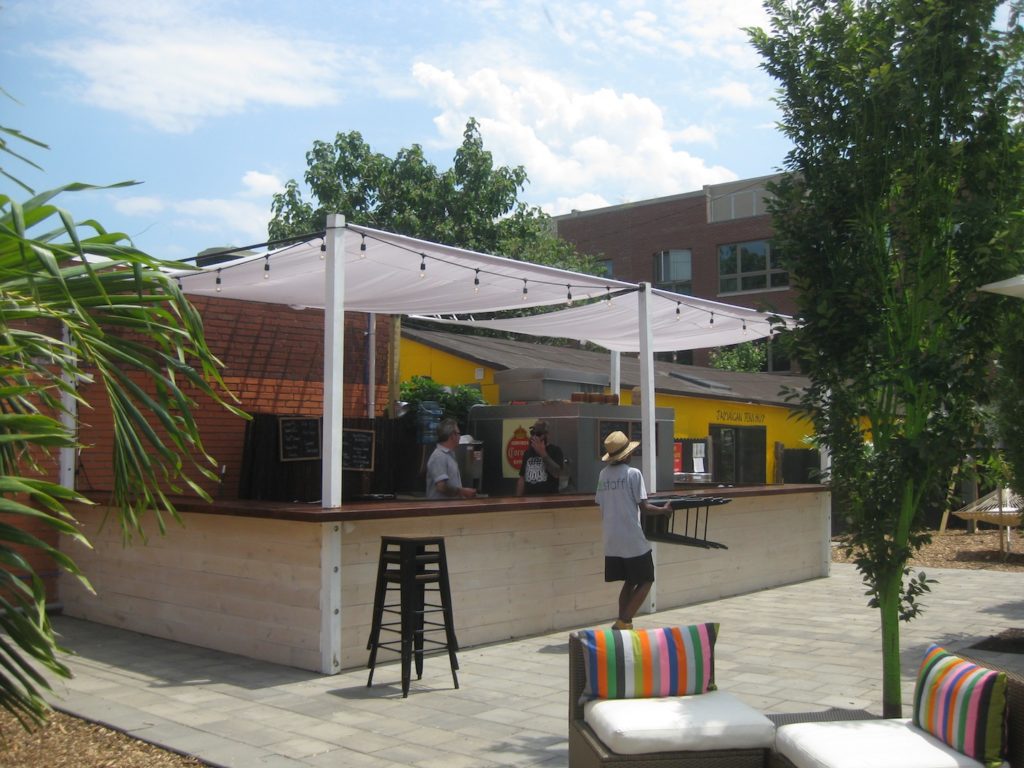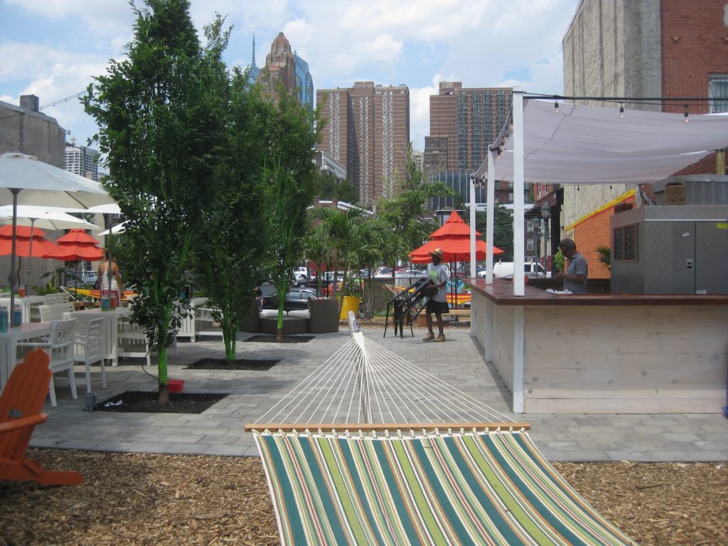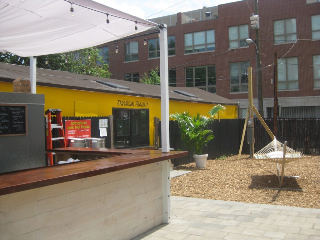 The garden opens weekdays at 11am, and weekends at noon. Food and drink run from 5pm-10pm Mondays through Thursdays, 5pm-12am Fridays, 2pm-12am Saturdays, and 12pm-10pm Sundays. Along with foodstuff from the Jamaican Jerk Hut, look for a rotation of food trucks to appear in the rear of the garden. And a whole bunch of events will be taking place as well.