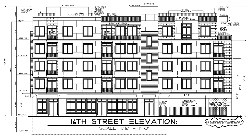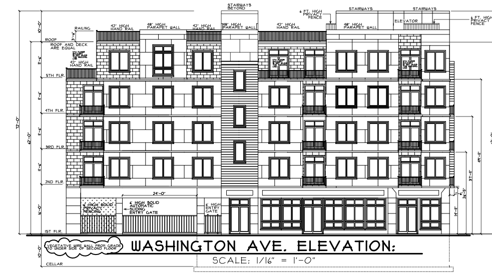 Back in May, we first told you about plans for a large new mixed-use development at 1601 Washington Ave., currently a portion of the parking lot for the Big 8 Supermarket. Then, over the summer, we had some additional info and elevations drawings to share after the developers presented to a supportive SOSNA. In October, we attended the three hour (!) zoning hearing for this project, but neglected to write about it because thinking too much more about that hearing would have given us night terrors. Around 9pm, as the hearing was drawing to a close, the ZBA took the very unusual step of holding their decision until the applicants could present to the Planning Commission. That presentation finally took place yesterday.