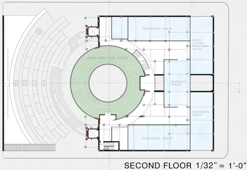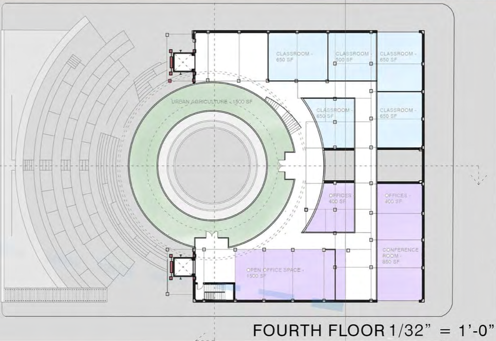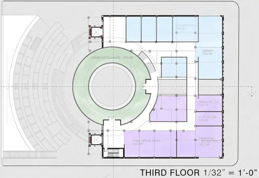 This past semester, a class at Philadelphia University was tasked with coming up with a creative way to reuse the building. Over the next few weeks, we'll be profiling some of the ideas that came out of that class, which are currently presented in poster form in the SOSNA office. Please keep in mind, these proposals are the efforts of individuals who were encouraged to stretch themselves architecturally and creatively, so it's extremely unlikely that any of them will ever be implemented. Still, as an academic exercise, it's very interesting to see how this building could be reused.