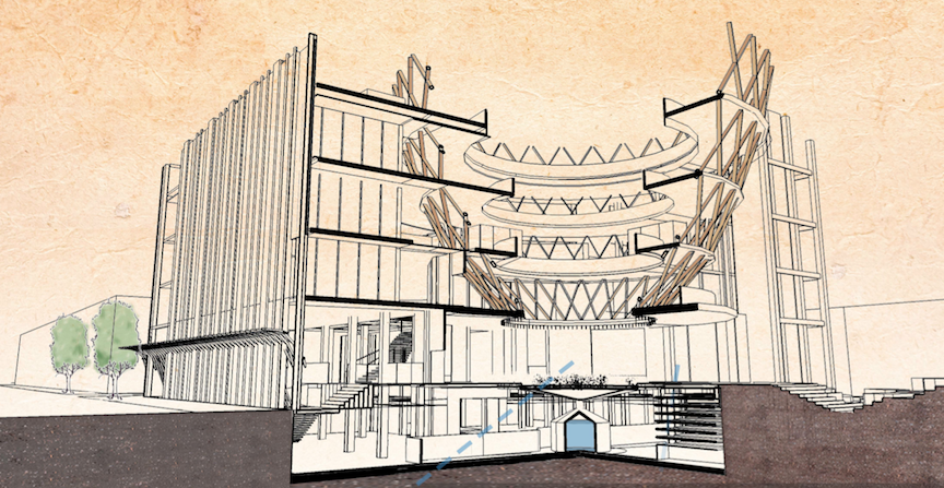 The first project turns the building into a massive rainwater collector by building a huge funnel into the side of the building. Most of the collected water from the sky in this application would be used for urban farming in and around the building. Other parts of the building would be used for retail, office space, and educational purposes. Check it out.