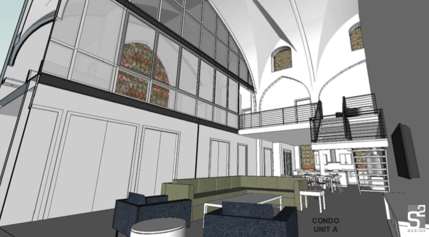 It wasn't long before another developer came forward to buy the church, the former rectory next door, and the adjacent parking lot on Montrose Street, this time with a plan to reuse the existing structures. Earlier this week, representatives for the developer presented plans for the property at the monthly SOSNA zoning committee meeting, and even though we couldn't make it to the meeting, we have some pretty pictures to share.