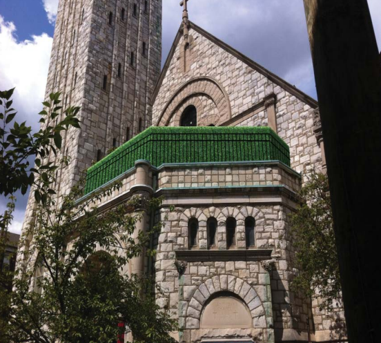 In recent days, some readers have reached out to let us know about a possible problem with the project that could undermine an otherwise tasteful renovation effort. Above the front entrance, you can currently see a collection of rooftop compressor units. It looks pretty awful.