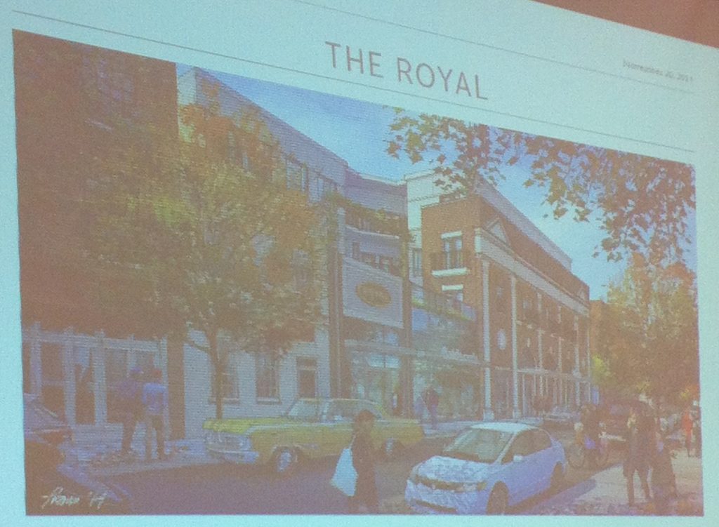 Our last Royal Theater update came in September, when we told you that Dranoff Properties was partnering with Universal to redevelop this longstanding blight on the 1500 block of South Street. The plan, designed by JDavis Architects, would mean the demolition of the historic building but the preservation of its facade. Incorporating the vacant lots on either side, the new building would have 45 luxury rental units, 7,600 sqft of retail space, and 20 parking spots underground. Last night, the developers presented the project again at a special SOSNA community meeting. The special meeting was necessary because the project is being introduced through an ordinance in City Council, and not the through the typical ZBA process.