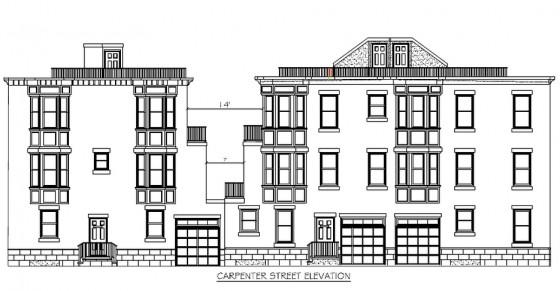 What do you think? Just how important is rear yard space for homes, especially for those located on a corner? Are roof decks sufficient for open space, or should every house have a yard? Should the ZBA force the developer to scrap the garage, or is the symmetry created with the building next door visually appealing?