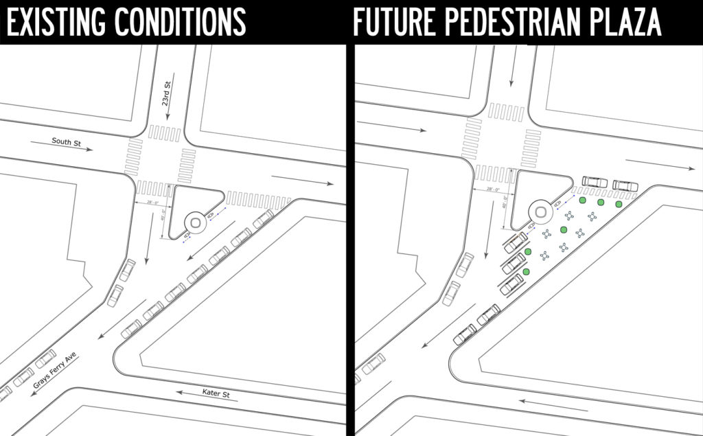 The rethinking of public spaces has become all the rage in Philadelphia in the last couple of years. Every spring, more parklets appear outside of popular businesses. The Porch has taken a bleak stretch of sidewalk in front of 30th Street Station and turned it into an active, programmed space. The Pennsylvania Horticultural Society keeps creating pop-up gardens in prominent vacant lots. And in a couple of weeks, the triangle at 23rd Street and Grays Ferry Avenue will become the next public space, albeit on a temporary basis.