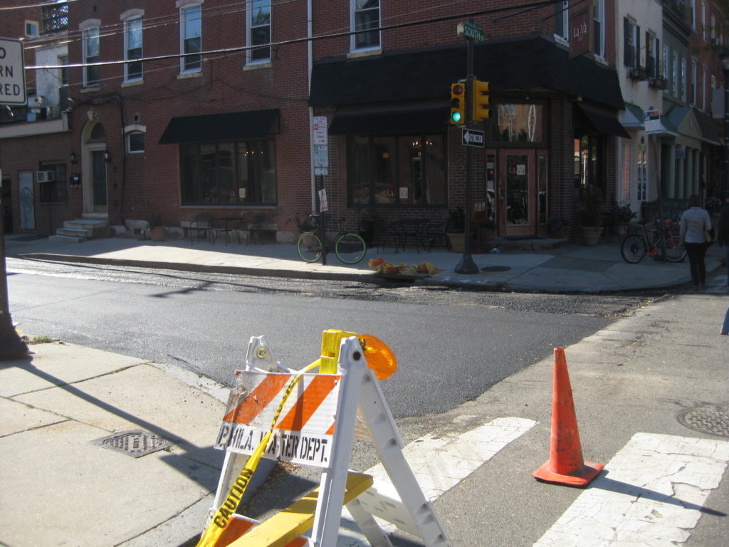 Way to go, Streets Department! Way to go, Philadelphia Water Department! Can’t wait to walk, bike, and drive on this intersection once again.