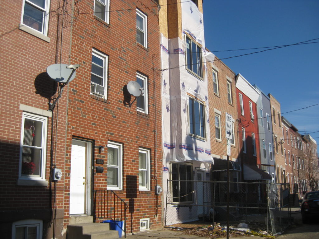 We've already covered all sorts of development on Carpenter Street in the Graduate Hospital neighborhood. On various blocks, one or two-off developments have taken place in the last year, with some still under construction as we write these words. The other day, we spotted yet another project under construction, this time on the 1800 block.
