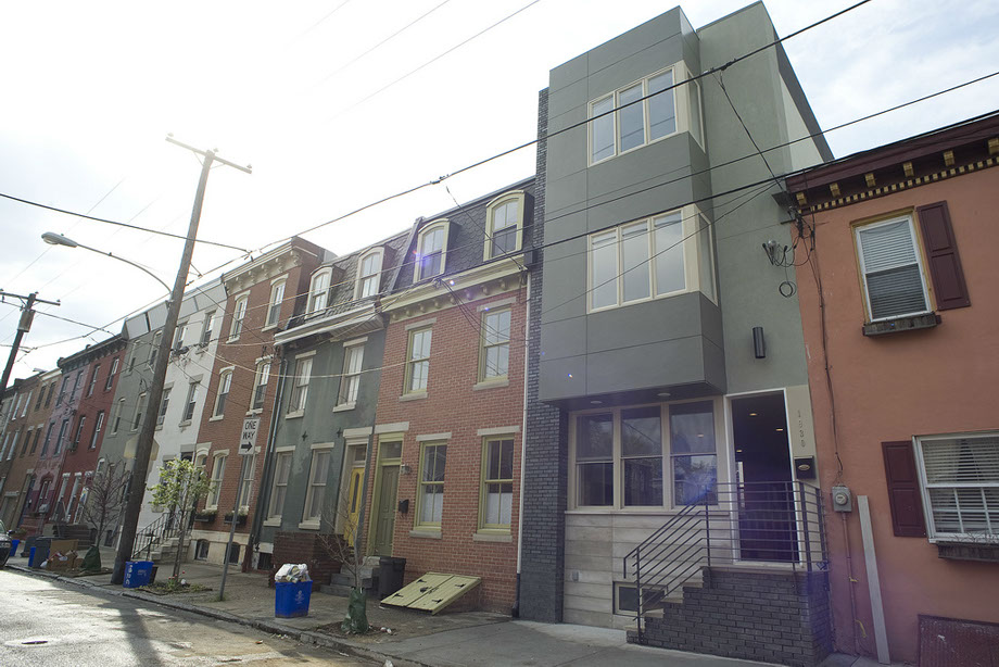 As you might imagine from the home pictured above, these guys specialize in contemporary design. And the interiors of their houses have contemporary touches just like their exteriors. While some people might decry this break from traditional Philadelphia architecture, we welcome the variation. We're not sticklers for perfect consistency except on a small handful of blocks where radically different architecture would really stick out. For example: