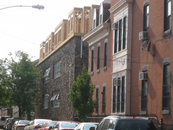 In recent weeks, carpenters have been busy at this site, framing the additional story that’s going on top of the existing building. Check it out: