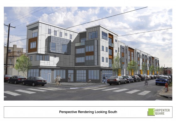 Last week, we teased about the upcoming development at the vast lot on the southeast corner of 17th and Carpenter Sts., promising an update after the SOSNA meeting. We go to lots of community meetings all over town and there’s a pretty regular pattern to presentations for large projects like this one. Developer presents, community grills, developer sweats, architect swoops in, community grills, lawyer interjects, near neighbors shout, police arrive, riot ensues, etc etc etc. While last night was only an informational session and the developers won’t actually be seeking community support for variances for several months, it was easily one of the most pleasant presentations we’ve ever experienced.