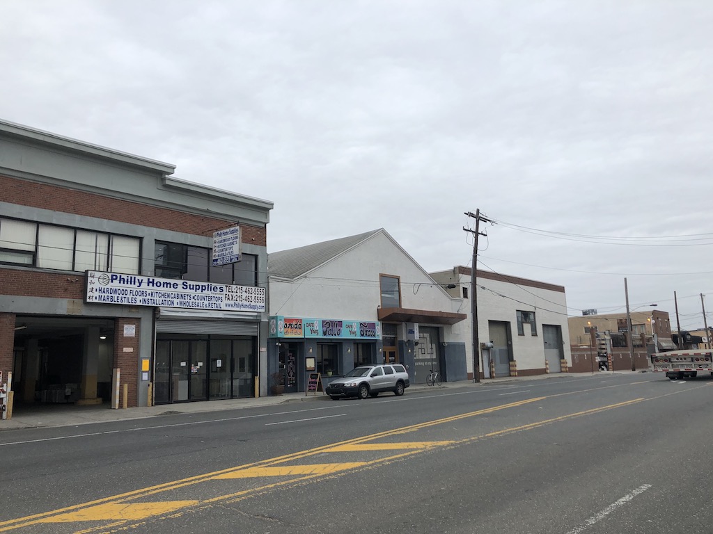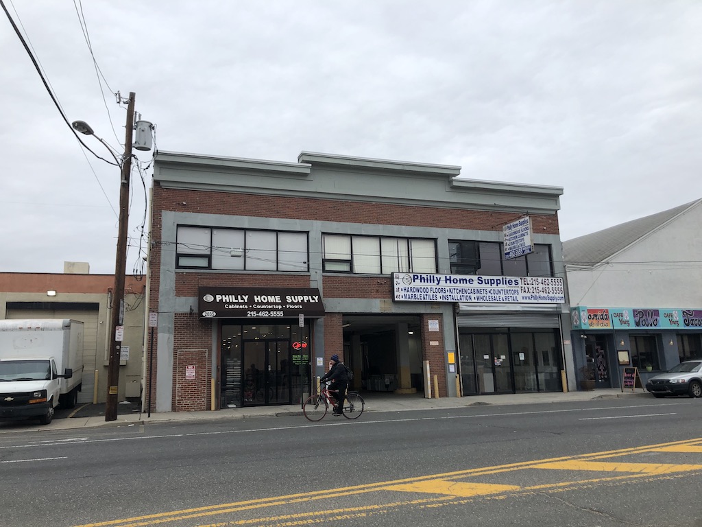 The triple-wide building at 2031-35 Washington Ave. has a decidedly backward looking approach to the corridor on which it sits. This two-story industrial building stretches all the way to Kimball Street and dates back at least over half a century. For many years, a tire business occupied the majority of the building and more recently a small restaurant occupied a small space as well. We had a lousy breakfast sandwich from this place maybe ten years ago, but we don’t feel guilty badmouthing the food since the business has been gone for quite some time. Within the last couple years, Philly Home Supply opened in the building, yet another building materials business on the corridor. It’s odd that a store targeting contractors would have opened on Washington Avenue in the current development climate, but the corridor is still mis-zoned for industrial use, so this is the kind of thing we’ll continue to run into as long as that situation continues.