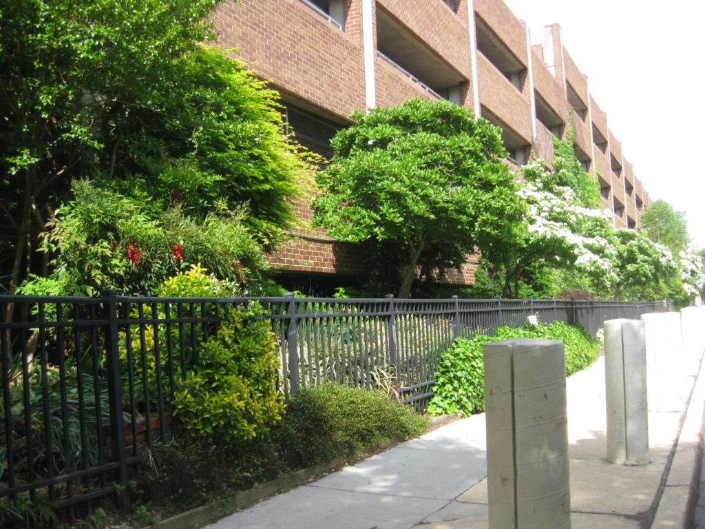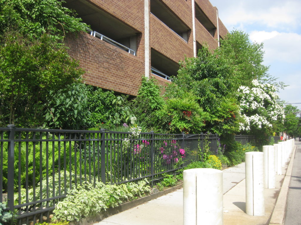 We don’t know when this green space was established or who tends to it, but it’s currently in full bloom and looks fabulous. We’d suggest you head over in the coming weeks and take a peek. You’ll be glad you did. And maybe you’ll hate that parking garage just a little bit less.