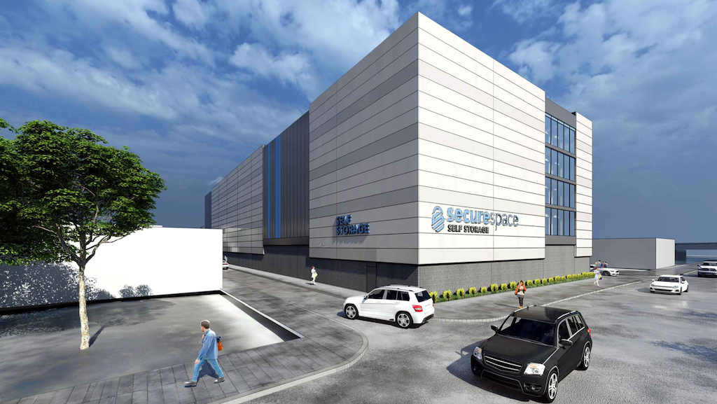 Next month, the developers are coming to Civic Design Review to present a plan to build a storage facility at this location. The storage facility will rise five stories and will be operated by SecureSpace Self Storage, which already has a couple other locations around the city. The project will also include a small surface parking lot on the southern end of the property. Check out the renderings from the CDR Pack, with credit to TAO Architecture and Design.