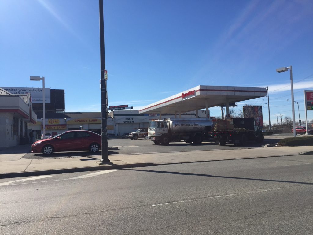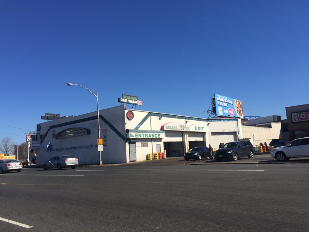 We reached out to Triad to enquire and learned that the opportunity isn't quite as sweet as we'd hoped. Indeed, the car wash is looking to close up shop, and its building is available for lease. The gas station isn't included in the proposition, nor is the Dunkin Donuts. So what you're looking at is a large warehouse building with a partial mezzanine with a donut shop on one side and a gas station on the other side. The place is not for sale, so you can forget about any redevelopment possibility. Then again, given the location next to the highway and the zoning as auto-oriented commercial, we're not sure what would actually be a higher or better use than the car wash.