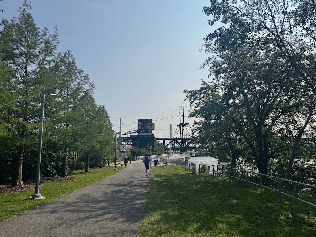 Last month, another new section of the trail was completed, connecting the section that previously ended at Christian Street to a section that runs along a crescent of the river in the Grays Ferry neighborhood. We last updated progress on the the Christian to Crescent section of the trail in the summer of 2023, and yesterday we got the chance to ride a bike along this shiny new part of the trail. And it was awesome.