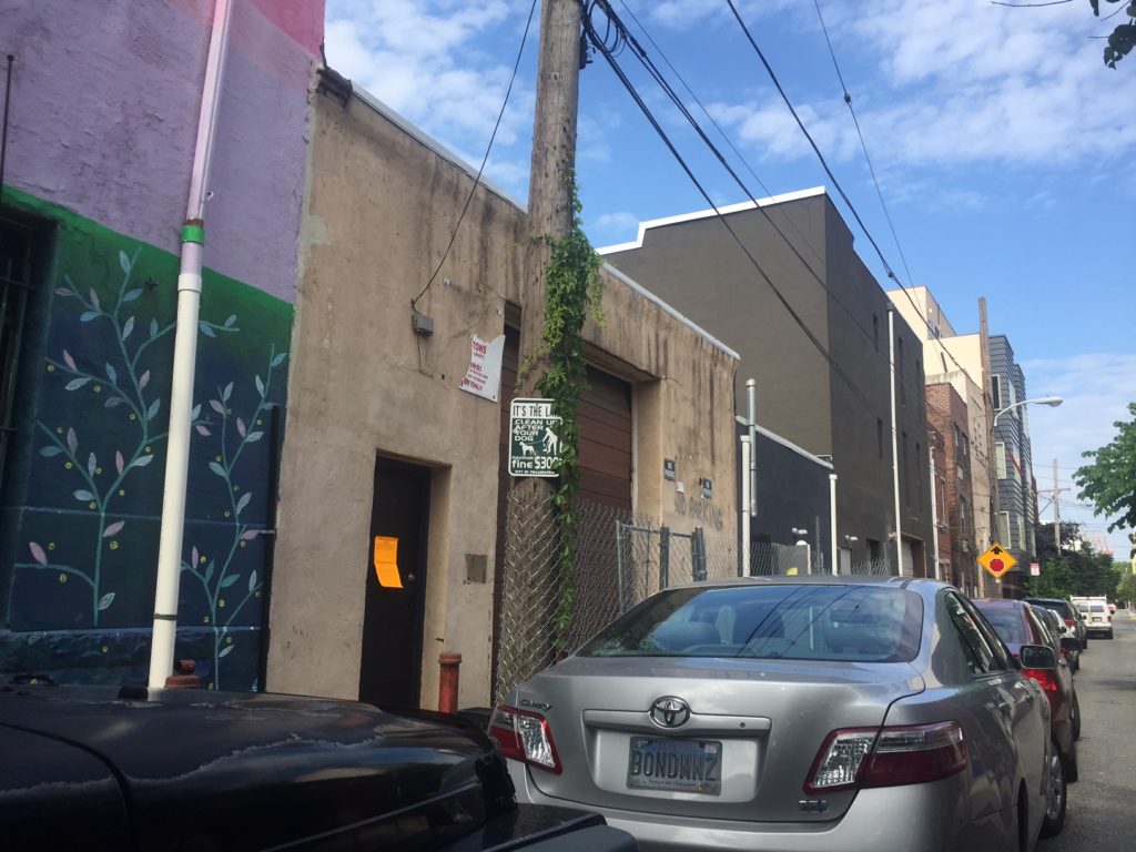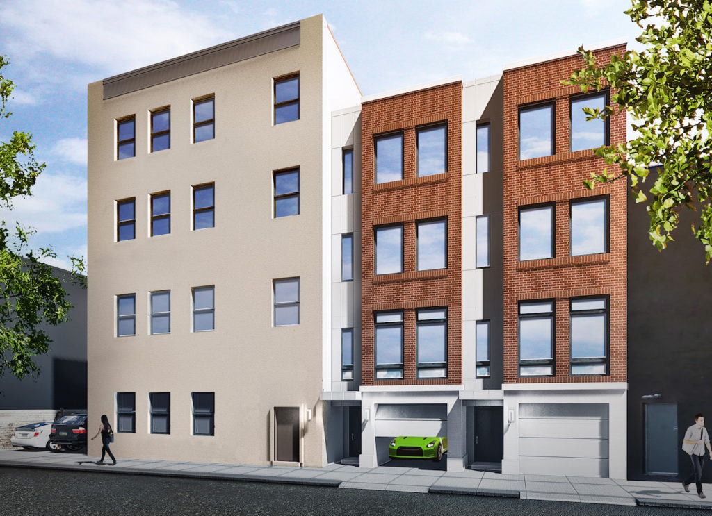 One part of the project will mean the renovation of the four-story building in the image above and its conversion to twenty apartments. This building has some interesting history, dating back to the early 20th century and originally serving as the home base of J. Bloom & Sons, a wholesale bottle dealer. It's certainly a plus that the building will stick around. Next door, a one-story garage won't be so lucky, with plans for demolition and eventually two new homes on Bainbridge and two new homes on Kater. Like the building they're replacing, the new homes will have garages.