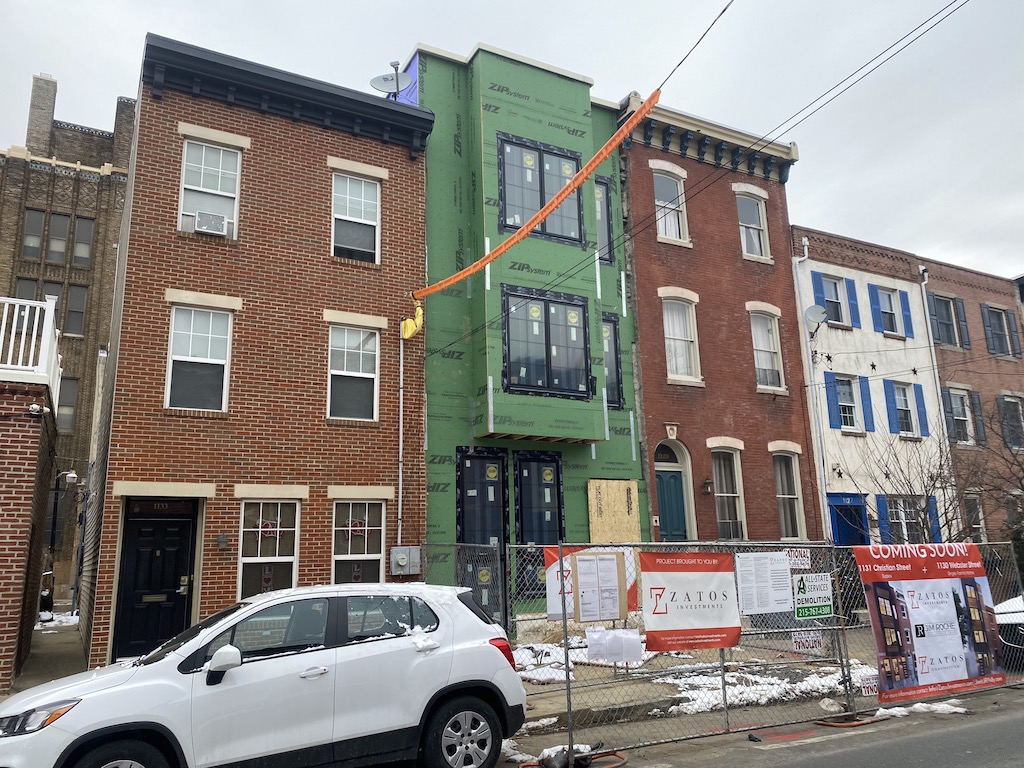 The 1100 block of Christian Street is a mostly residential block, featuring a mix of townhomes, duplexes, triplexes, and one of the best auto shops in town at the corner of 11th Street. The block is complete and well established, and most of the homes are original, with only a few newer buildings or altered facades. Nevertheless, there’s still a little bit of construction action that we can share here, covering two projects at either end of the street.