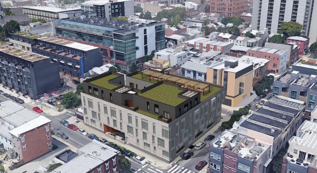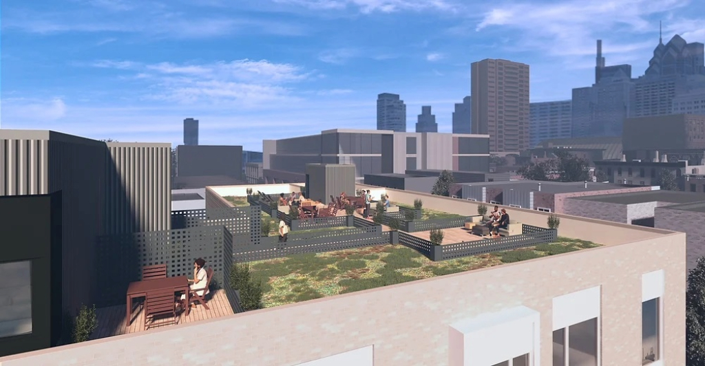 Things have been moving along since then, with Benchmark Construction Group turning ALMA Architecture‘s design into a reality. This project, per the most recent zoning documents we have available, will include 45 units, with ground level parking for 13 cars and 16 bicycles. There won’t be any commercial space included here, but there will be nine affordable units – a huge win for a spot in such a sought-after area. While things aren’t quite finished yet, brickwork and windows were wrapped, with some final paneling installation all that’s left. The design here is feeling pretty darn nice, with the gray brick and white and asymmetric windows offering a sleek, contemporary look. Parking will be accessed from Kater St., allowing for both 13th and Bainbridge Streets to remain clear of curb cuts. Oh, and the roof deck will offer some amazing views of Center City.