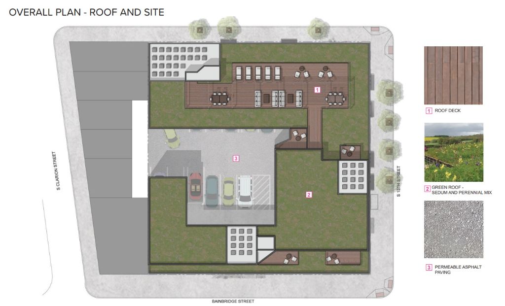 It has been slightly over two years since we were at the NW corner of 13th & Bainbridge, when we told you about enlarged plans for a project that was slated to rise on a vacant lot. After plenty of back and forth, this city-owned parcel was finally approved to move forward with a 99-year ground lease, allowing for 45 units to rise here across four stories. While we do love our green spaces, this “park” seemed like it would be much more useful as housing in such a central location.