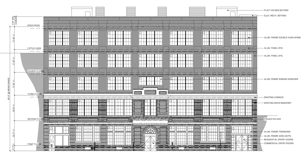 In our story from a few years ago, we noted that the property was remapped to CMX-2.5 during the time the project was appealed, opening the door for a by-right mixed-use development. At the time, the developers were planning to move forward with a new plan for the site and were looking to demo the existing building and replace it with a 52 unit project with no parking. That was four years ago, but as you can see, nothing has happened at the site to date. That’s because the property was nominated to the historic register in the interim. This spring, the owners of the property pushed back against the nomination, due to the fact that the building is already partially demolished and an engineer declared it structurally unsound. Now, finally, they’re in a position to start a project here.