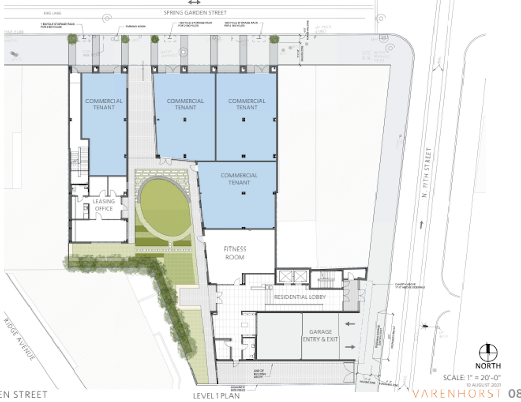 We first covered this property back in 2013, shortly after developers presented new plans to the Callowhill Neighborhood Association. The project called for the preservation of the Lawsonia building and the construction of a three-story addition on top, with 40 apartments over a 9,000 sqft commercial space and 18 parking spots. Due to the zoning at the property at the time, the project needed a zoning variance, which the ZBA granted. And we were excited about the prospect of seeing something like this rise at this location: