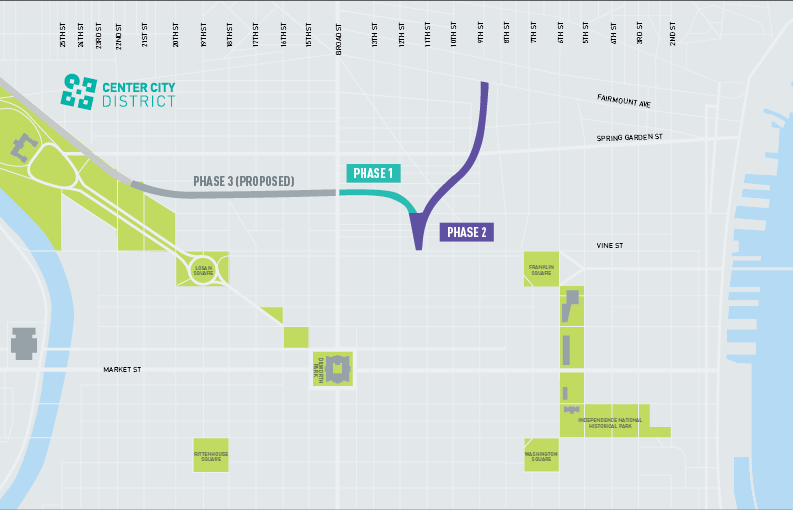 But after the initial rush of excitement, things have been quite quiet since. There have been some encouraging signs of progress here and close by, with some demo, the capping of the adjacent Vine St. Expressway to the south, and an RFI from SEPTA for the Cut. However, the footprint of the park remains the same as it did on the day it opened. That may change soon, however, according to a very exciting announcement about major steps for Phase 2.