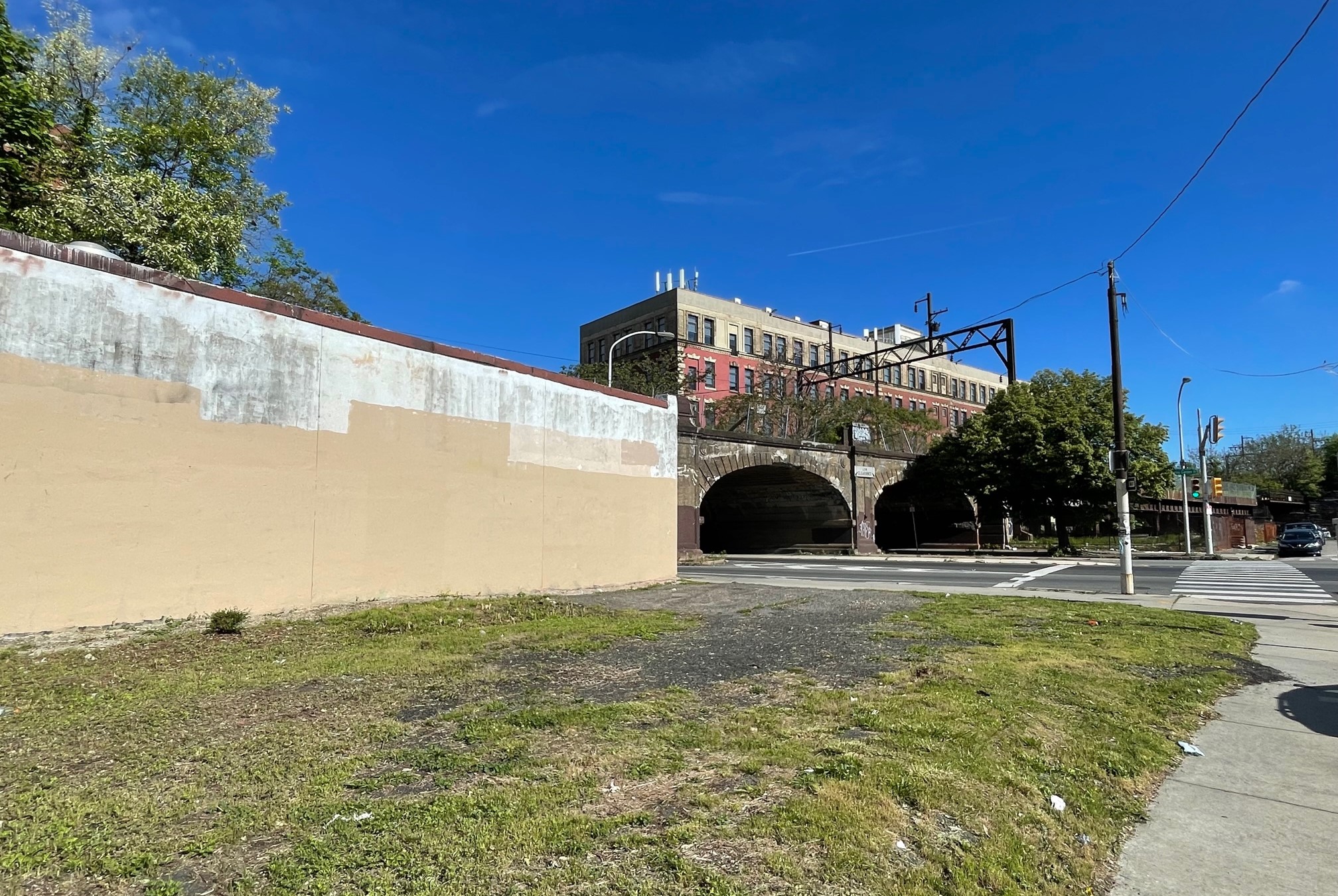 The areas close by aren’t exactly filled with amenities, either. To the north sit two vacant lots: one is slated for an 18-unit apartment building, one is the former home of a handsome train station that recently met the wrecking ball. To the west is the unwelcoming presence of the yet-to-be-realized future phase of the Rail Park, creating something of a physical barrier to the site. To the south is a row of commercial properties, with Callowhill St. in the distance at the peak of its highway-like glory. While there are plans for 63 units close by, this isn’t exactly a hotbed of development.
