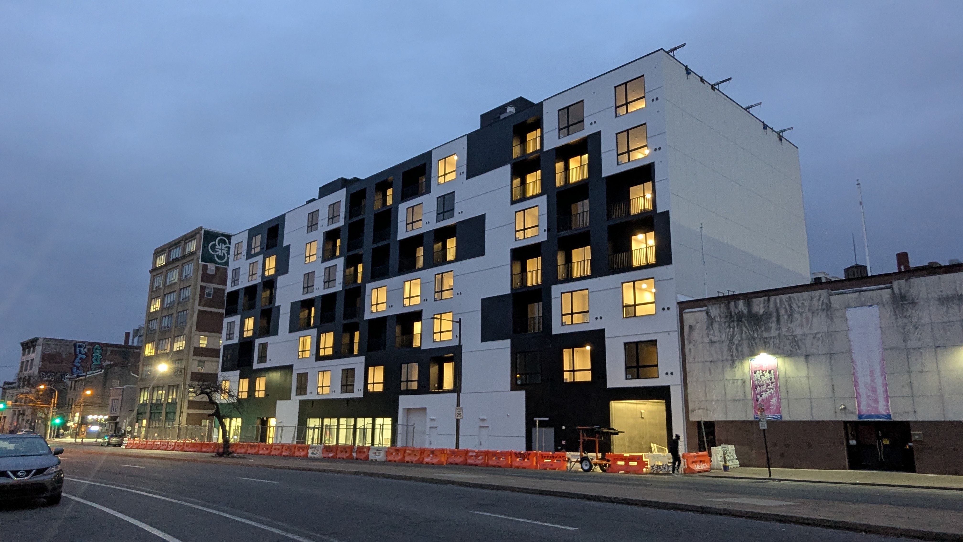 It’s been a pleasure watching this building go up, especially considering the awful alternative that we were considering just a few years ago. We wonder, if not for the parking minimum imposed by the code, if the developers might have been able to include a few more units in this building. Certainly, if not for the parking requirement, the streetscape wouldn’t be impacted by a pair of curb cuts. If Mayor Parker wants to induce more housing production in Philadelphia, we’d advocate for eliminating parking minimums across Center City. At the very least, we’d propose rolling back those requirements for properties within a couple blocks of every subway stop in town.