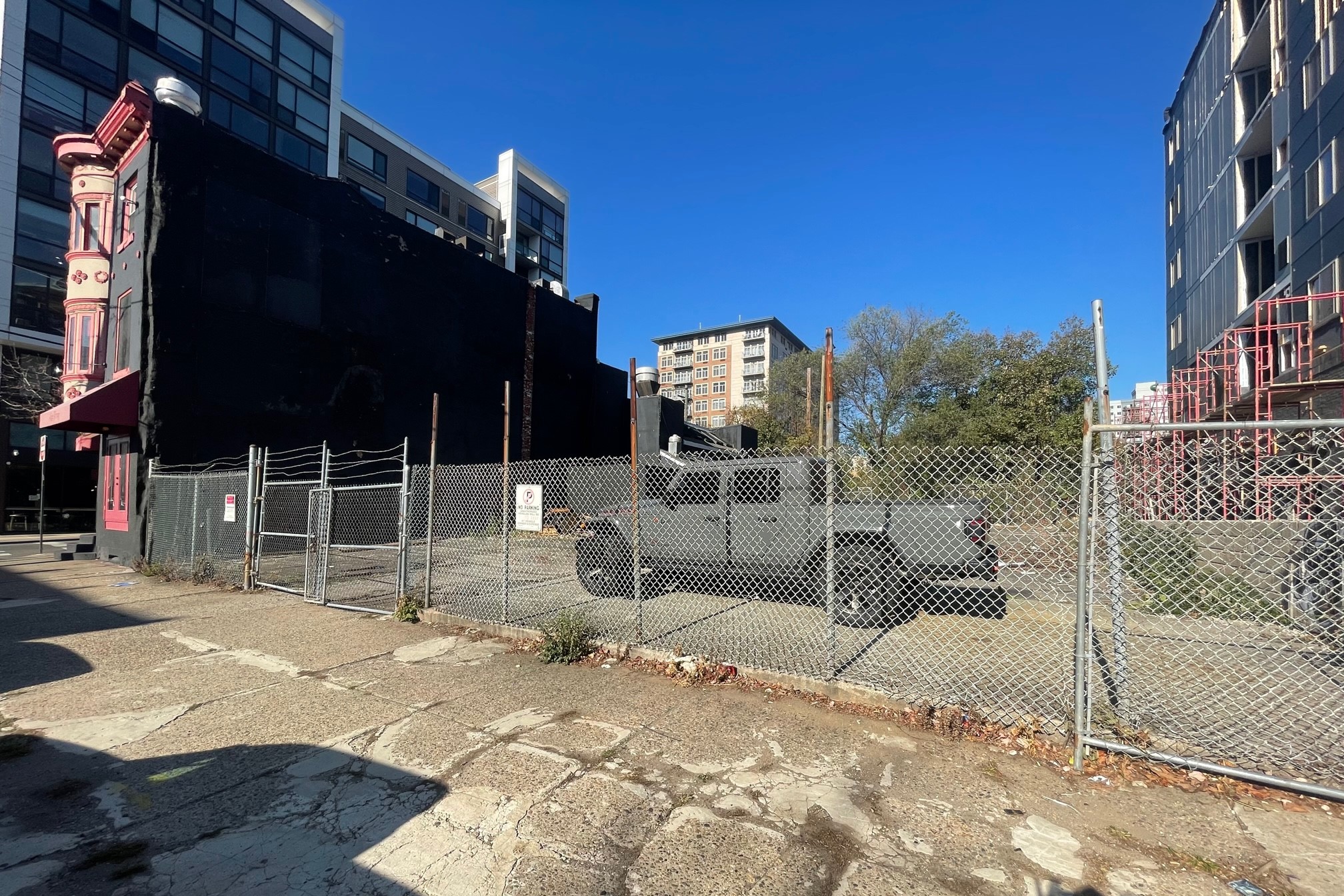 We aren’t necessarily blown away by the panel-heavy design, but this is most certainly a big step up for this CMX-2.5 zoned lot. Last time we were here, we were pining for some development action on the east side of the lot at the very large parcel at 1801 Callowhill, and that hasn’t happened yet and probably won’t any time soon. Today, we’re moseying our way to the west. A now-closed Rose Tattoo Cafe sits on the northeast corner of 19th & Callowhill, with a fenced-off surface lot sitting between the former cafe and the new building. Both the building and the surface lot are owned by the same long-time owner (who lives just around the corner), and clearly nothing has happened here since a confusing multi-family proposal half a decade ago.