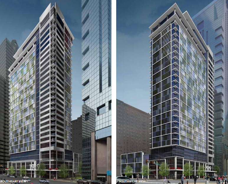 In case you don't remember, the project was designed by Barton Partners and plans call for calling for 321 luxury rental apartments. The project will also include parking for 215 cars over five stories, and some of the parking spots will be available to the public. Most of the building's commercial space will be filled by a CVS and office space for Independence Blue Cross. When all's said and done, the building will look like this: