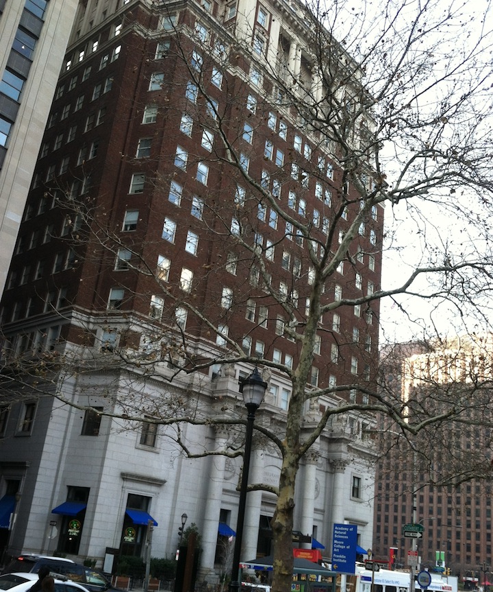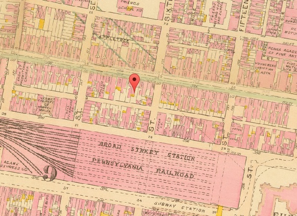 The Benjamin Franklin Parkway cuts diagonally through Center City, offering a stretch rich with museums, hotels and high-rises. Case in point, the 16-story building at 1600 Arch Street, just south of the Parkway, is situated perfectly at the intersection of all this culture and commerce. But before the Parkway’s initial appearance in the early 20th Century, this area was just another part of Philly’s grid layout, dotted with single residences and small businesses. The image here below, taken from G.W. Bromley’s Philadelphia Atlas, shows the southwest corner of 16th and Arch Streets at a time when planning for the Parkway was in its infancy.