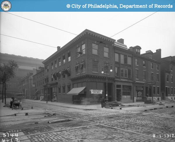 The image above even shows faint markings indicating the intended location of the new thoroughfare. As for 1600 Arch, its pre-Parkway life was largely as a series of nondescript businesses such as the one shown in the 1912 Department of Records photo here below.