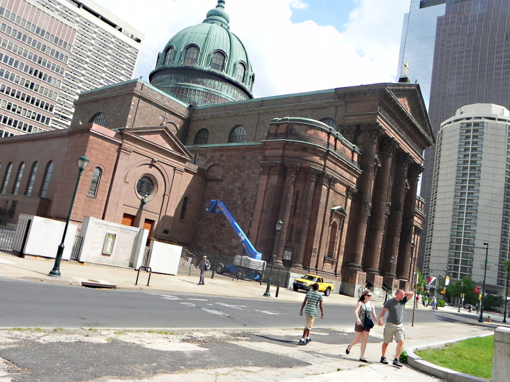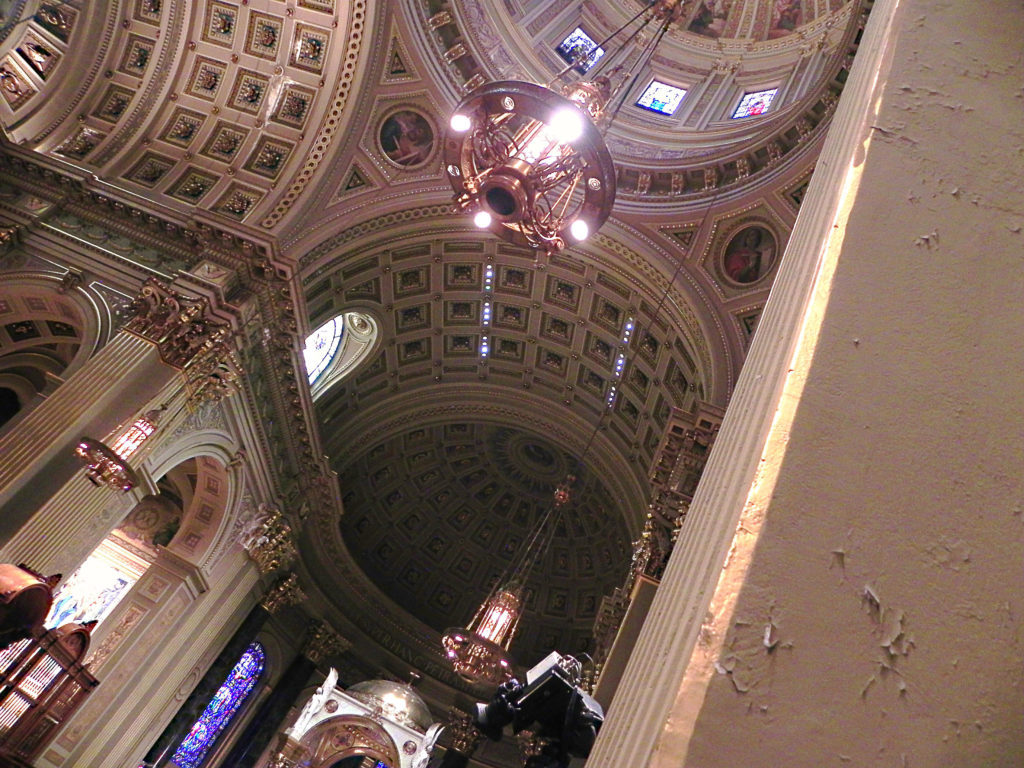 Since it was completed in 1864, rain, sun, wind and snow have worn down the façade and ornate plasterwork at the Cathedral Basilica of Saints Peter and Paul, the main church of the Archdiocese of Philadelphia at 18th Street and the Parkway. Now is the time for a five- to seven-year $28M renovation project (funded by an Archdiocesan Capital Campaign) to rehab the site modeled after the San Carlo al Corso Church in Rome, as needed, inside and out. Sometime this month scaffolding will go up along the front of the building for masons from Vitetta to begin testing the faded-to-pink brownstone originally hauled to the Logan Square holy site from Connecticut and northern New Jersey, for structural integrity, according to Rev. Msgr. Arthur E. Rogers. Upgraded to the honor of Basilica in 1976 by Pope Paul VI, the structures’ statues of Saints Peter and Paul, the Sacred Heart and the Blessed Mother will be refinished and reinstalled in their current niches outside the building. Additional work includes roof repairs and the installation of a 21st-century heating and cooling system. Renovations will refresh the cathedral’s Roman-Corinthian interior and 60-foot copper dome.