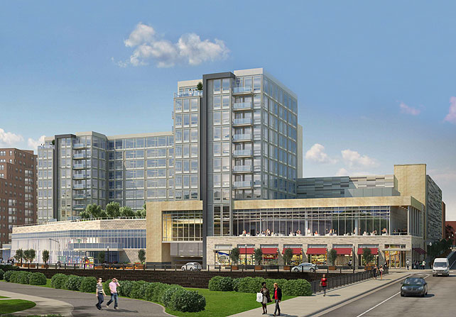Along with Whole Foods, the project will have a couple of additional retail spots. It should be interesting to see what kind of tenants fill 'em. Also, as you've probably figured from the renderings, there's a significant residential component. There's gonna be 293 apartments over nine stories, to be exact. The apartments will have almost 1:1 parking in an adjacent garage which will also have bicycle parking. As you might expect, there will be plenty of amenities for the residents. Most of those, like a pool for example, will be located on the roof of the Whole Foods.
