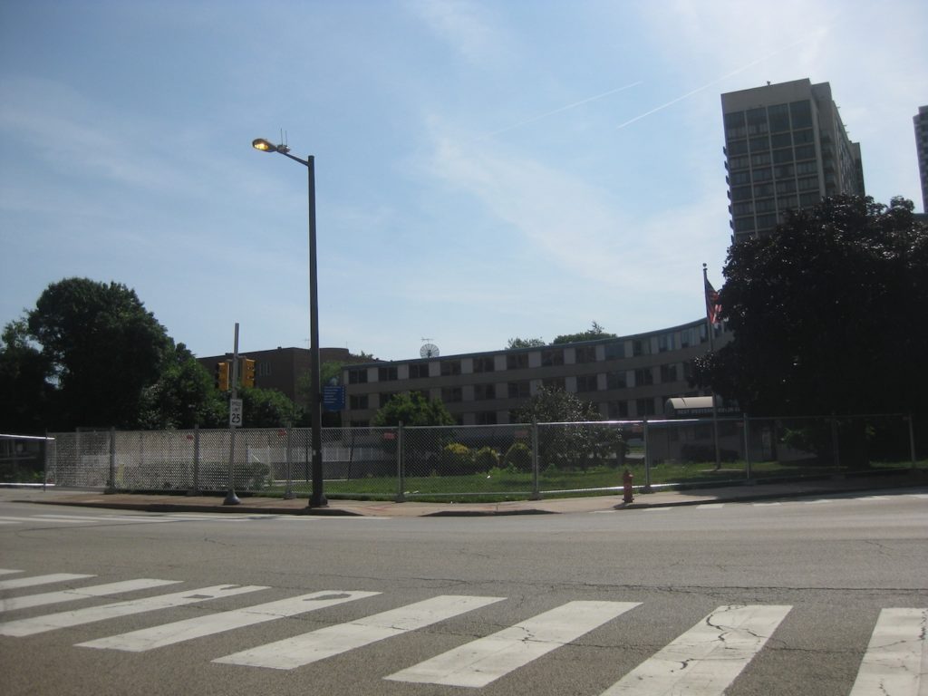 So why are we bringing up this project today of all days? Well, a reader was kind enough to tip us off that a construction fence recently appeared around the doomed Best Western Hotel.