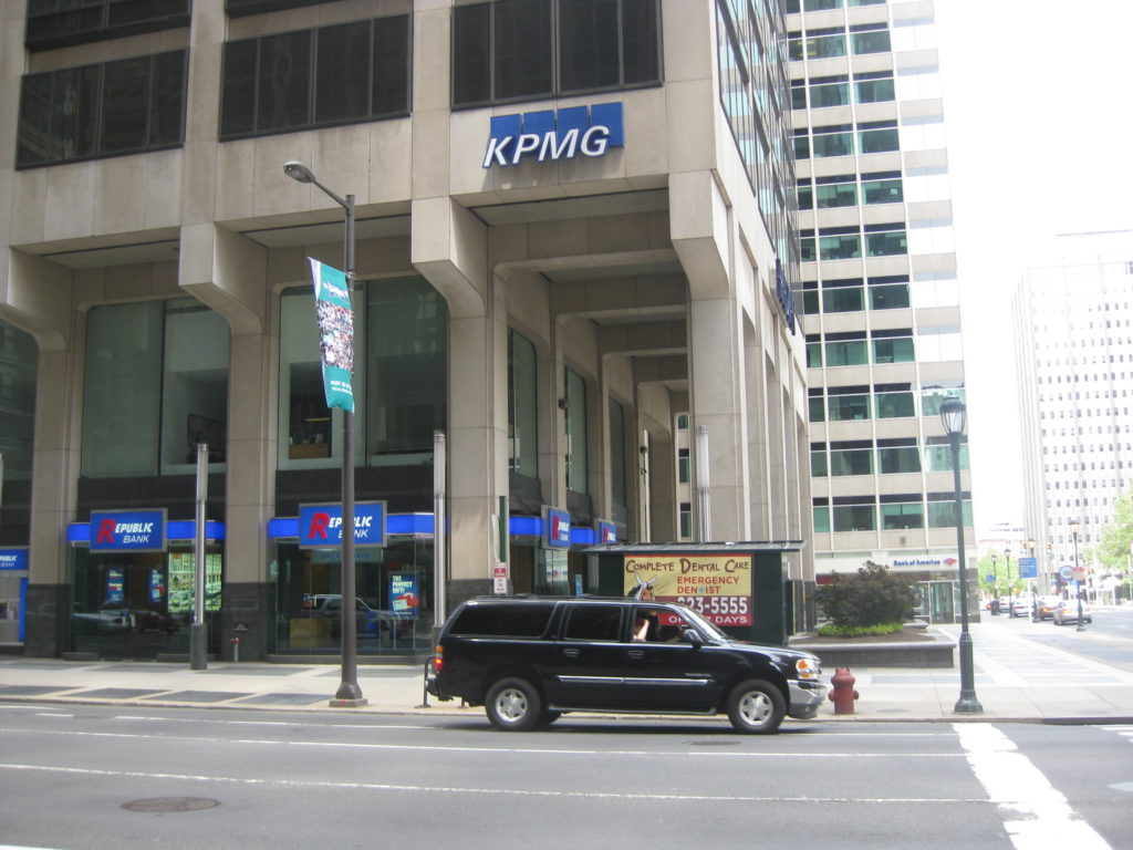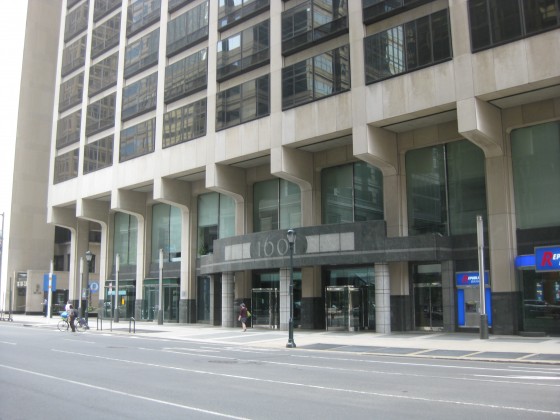 Built in 1970 as Five Penn Center, 1601 Market St. was designed by Emery Roth & Sons and stands 36 stories tall. According to Wikipedia, The Neat Company, KPMG and the Radian Group are among the main tenants of this structure, whose design elements hammer home the era in which it was constructed. So it’s with some interest that we bring you news that the facade of this building may be changing in the near future.