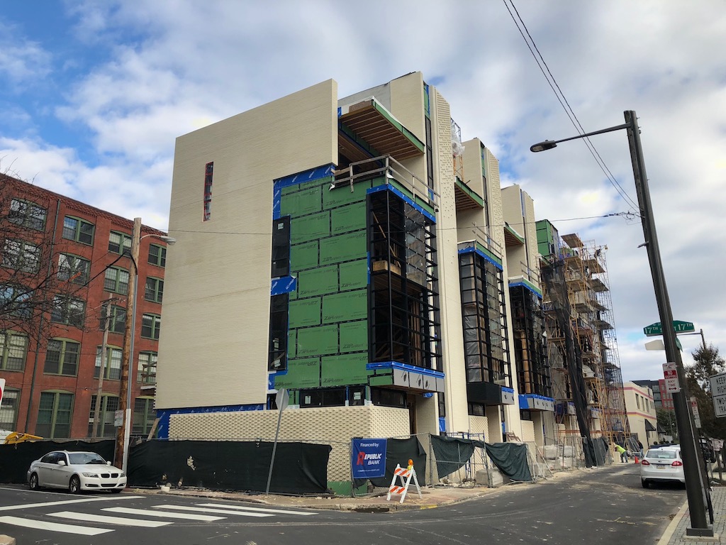 A clunky building held down the corner of 17th & Wood for many years, functioning as office space and sitting across the street from a couple of giant surface parking lots. Just a half a block from the Vine Street Expressway, the building didn’t call much attention to itself and probably never showed up on most people’s radar. So it was with some excitement, back in 2012, that we shared the news that developers had purchased the property and had plans to build an addition on the building. Those plans called for parking and common space on the first floor, office space on floors 2 and 3, and apartments on floors 4 and 5. We didn’t love the design, but appreciated that it represented a serious upgrade over the status quo.