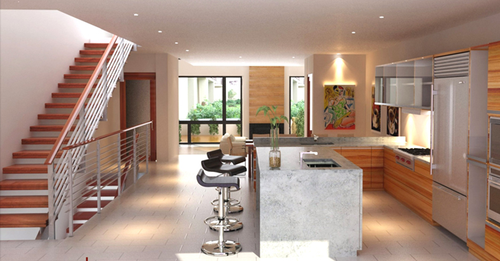 The Mode7 townhomes at 134 N. 22nd Street in Logan Square are like modern row home marvels complete with a little kick imported from the Middle East. With a two-car garage, an 800-square-foot roof deck with landscaping, interior courtyard, private elevator and a floating steel-and-teak staircase, these four-floor 5,200-square-feet homes are urban treats for folks moved by open plans and natural light. These homes were designed and built by partners Masada Custom Builders and Brown Hill Developers and one of the seven $1.7M homes (up to $2.2M) is already built and occupied with three additional properties under contract, according to Realtor Nancy Alperin. Residents can park in their off-street garage and head upstairs to the first-floor kitchen, dining room and living room. The entire floor flows seamlessly to an outside patio separated from the inside by a fireplace surrounded by windows, creating an illusion like the sky was in your sitting room. “When you stand in the living room, with your back to the walls and look up,” says Atrium, LLC Design architect Shimi Zakin, “it creates a really dramatic feeling.” There you’ll see the master suite’s second-floor den to function like a hanging balcony, by encompassing it with 43-inch high glass walls. Zakin helped transform Masada designer Isaac Ohayon’s vision from hand-drawn sketches to a master computer design.