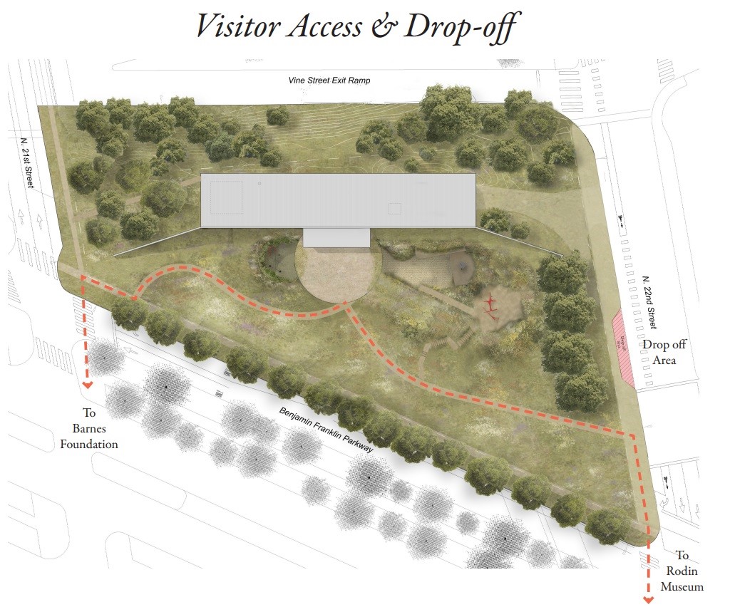 It was only a week ago when we dropped new renderings for the eagerly anticipated Calder Gardens, a brand-new gallery coming to the Benjamin Franklin Parkway. We had some idea of what was to come, but details were scant, which was especially intriguing giving the unorthodox design featuring a mix of structured subterranean galleries and lush gardens to showcase Alexander Calder‘s works. But thanks to a recent submission to the Art Commission, we now have a great deal more info on this incredible project designed by the team of Herzog & de Meuron and Piet Oudulf. Let’s take a visual journey through the experience of the Garden as the architect intended, shall we? Hold on tight, because there is a lot to take in.