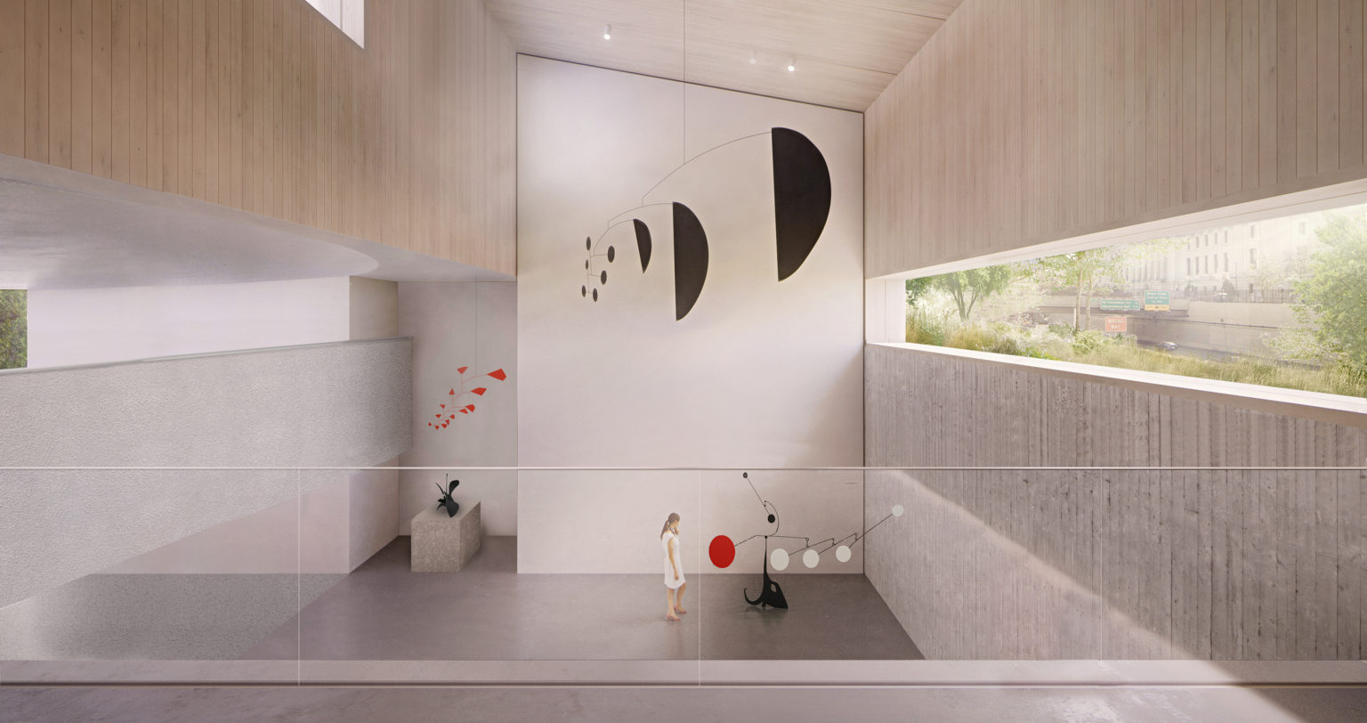 As you can see in that last rendering, this “museum” reads as more of a grotto-like garden sanctuary, with lush landscaping making up a majority of the street-level visual space. Move further toward what is now called Calder Gardens and you will enter a semi-submerged space with soaring ceilings, leading to two heavily landscaped outdoor areas on either side of the main entrance. The planning team wanted to subvert the idea of a typical museum, instead opting for a more open, airy and contemplative space in which to take in the works of one of the 20th century’s most important artists. A revolving display of works will dot the museum, with no permanent displays planned. The area is only 18K sqft, but it sure feels bigger with all of the openness of the design. But enough of our take, check out these absolutely mouth-watering renderings from Herzog & de Meuron.