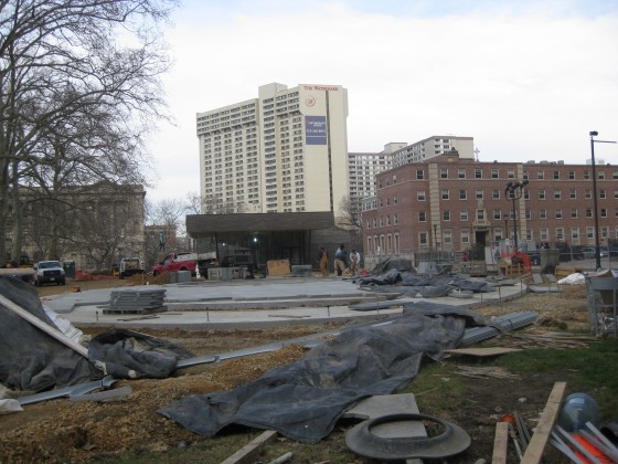 Since last May, Sister Cities Park, the easternmost patch of green space that makes up Logan Square, has been under construction. As we told you about back then, this renovation project is part of Mayor Nutter’s Green 2015 initiative as well as a part of a plan to spruce up the Benjamin Franklin Parkway.