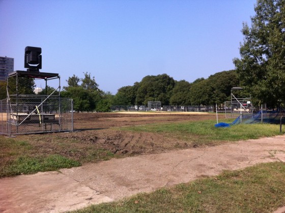 Von Colln Memorial Field, located at 22nd and the Parkway, was used extensively during the two-day concert, and the field is destroyed as a result. As you can see in the photos above, youth or adult league baseball is probably off the table this fall.
